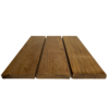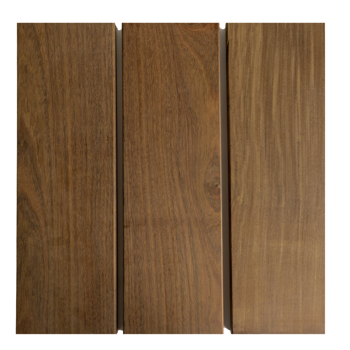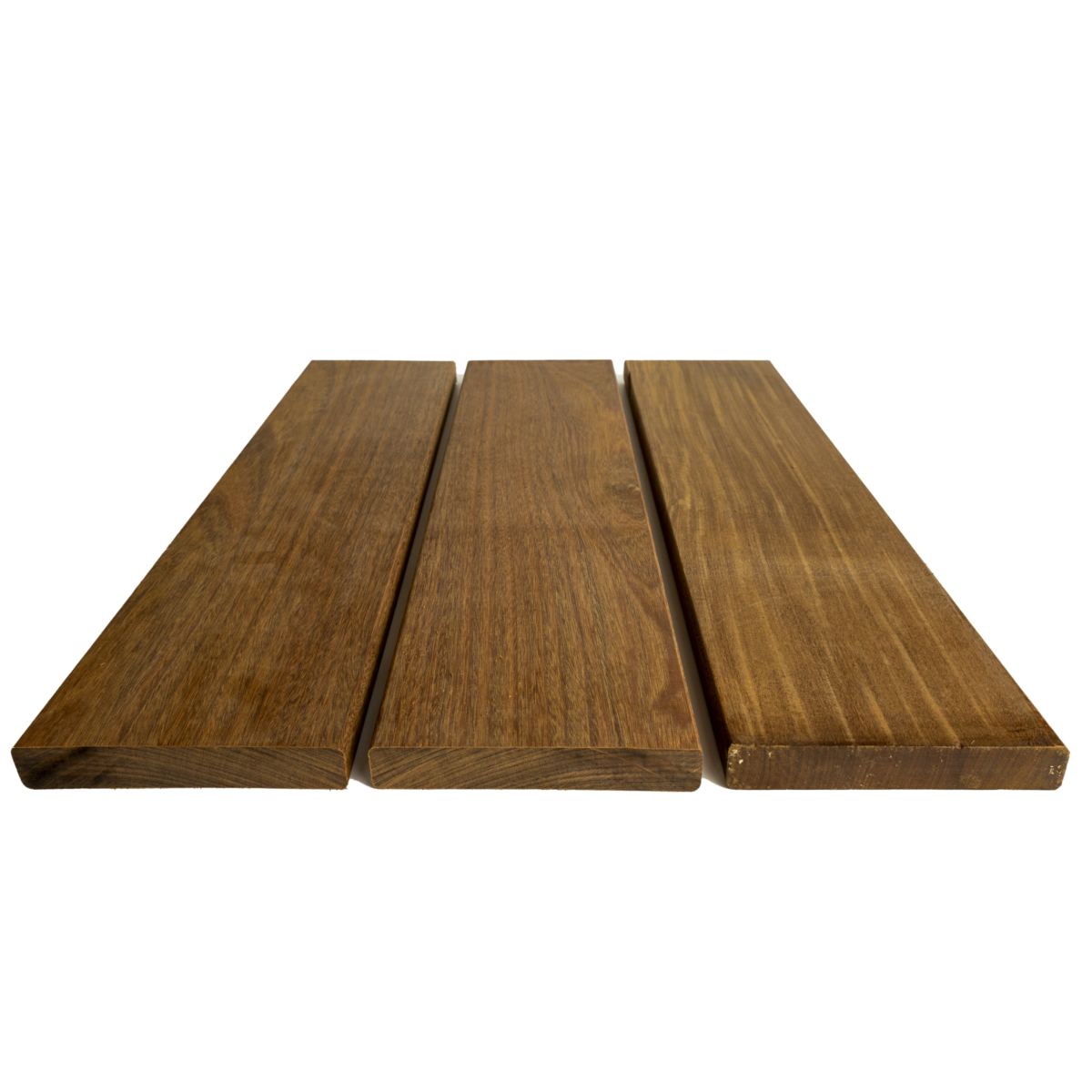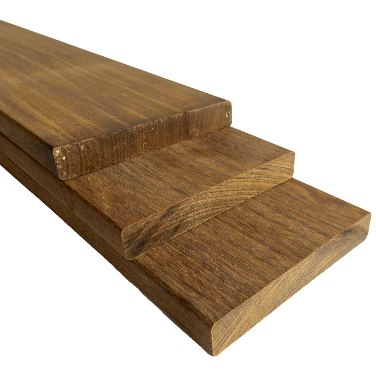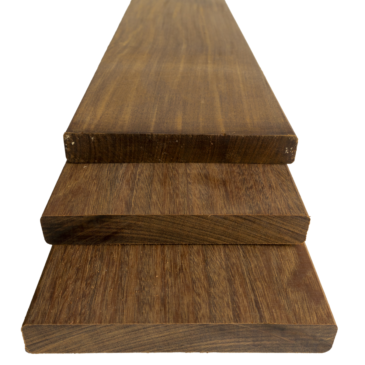 Afrormosia Recht R3 20x90mm is een zeer duurzaam en hoogwaardige houten plank met een glad, geschaafd profiel en subtiel afgeronde hoeken (R3). Dankzij deze afgeronde randen krijgt de plank een zachtere, verfijnde uitstraling. Dit profiel is ook te combineren met breedte maten 45mm, 70mm en 140mm voor een Open Barcode profiel.
