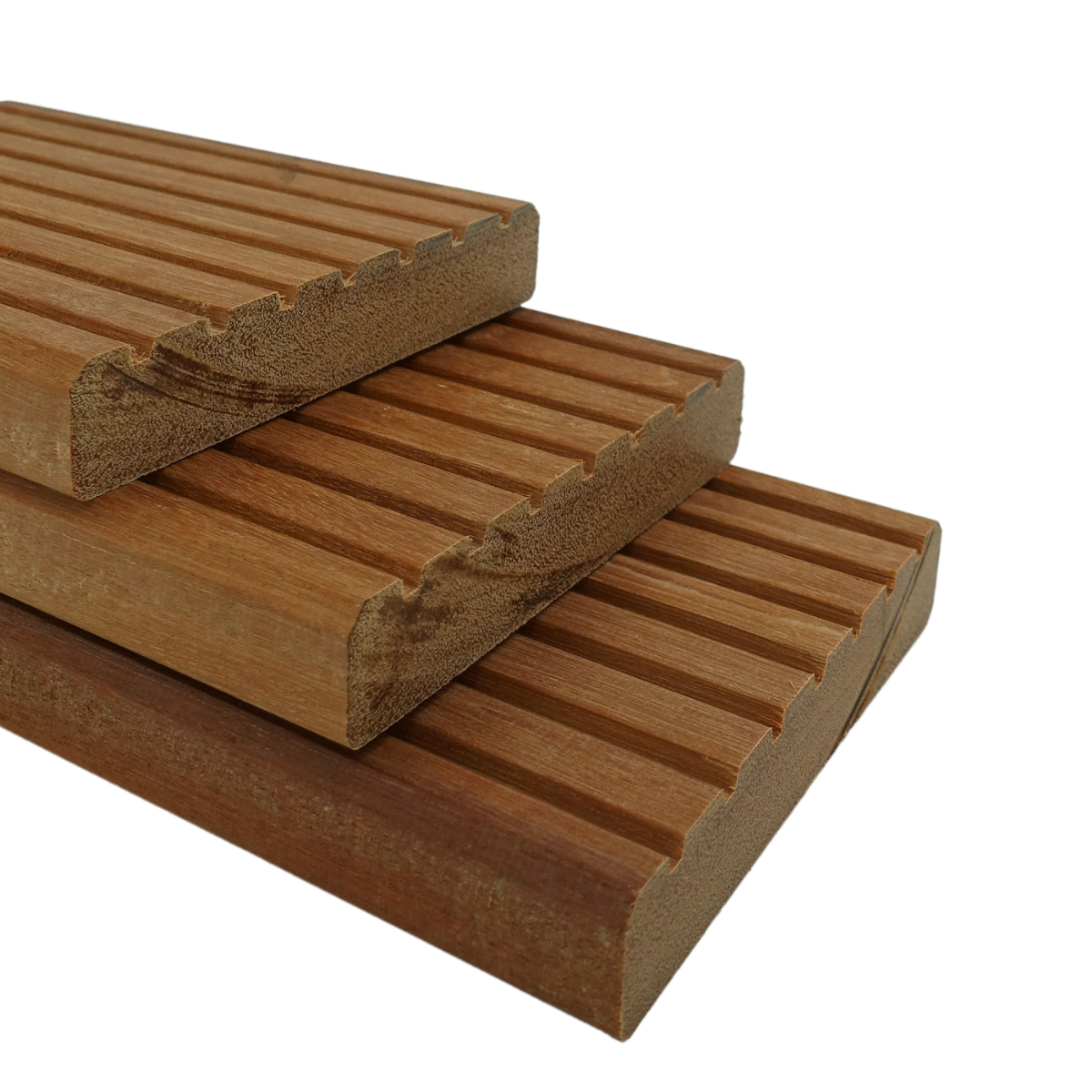 Breng kracht en klasse naar buiten met onze Bankirai vlonderplanken van 25×145 mm. Deze tropische hardhouten planken zijn aan één zijde gegroefd en kunnen aan beide zijden als zichtzijde worden toegepast – perfect voor een stijlvolle vlonder, terras of schutting.