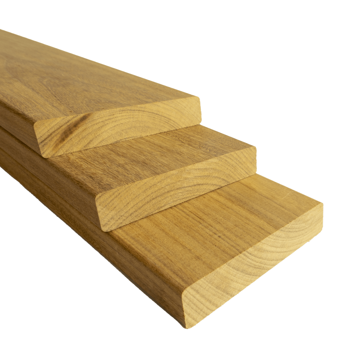 Iroko Recht R3 20x45mm is een duurzaam en hoogwaardige houten plank met een glad, geschaafd profiel en subtiel afgeronde hoeken (R3). Dankzij deze afgeronde randen krijgt de plank een zachtere, verfijnde uitstraling. Dit profiel is ook te combineren met breedte maten 70mm, 90mm en 140mm voor een Open Barcode profiel.