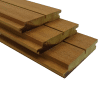 Een hardhout soort uit Afrika met duurzaamheidsklasse 1 en zo’n 25 jaar of langer mee gaat. Iroko, ook bekend als Mereira of Abang, heeft een warme kleur van botergeel tot rijke bruine tinten, vaak geaccentueerd door donkere strepen die diepte en karakter toevoegen. Dit prachtige hardhout is een goede keuze voor gevels en schuttingen. Het profiel Vario type 2 is geschikt om verticaal te bevestigen. Dit ietwat nerveuze hout is verkrijgbaar in lengtes tot 3650 mm.