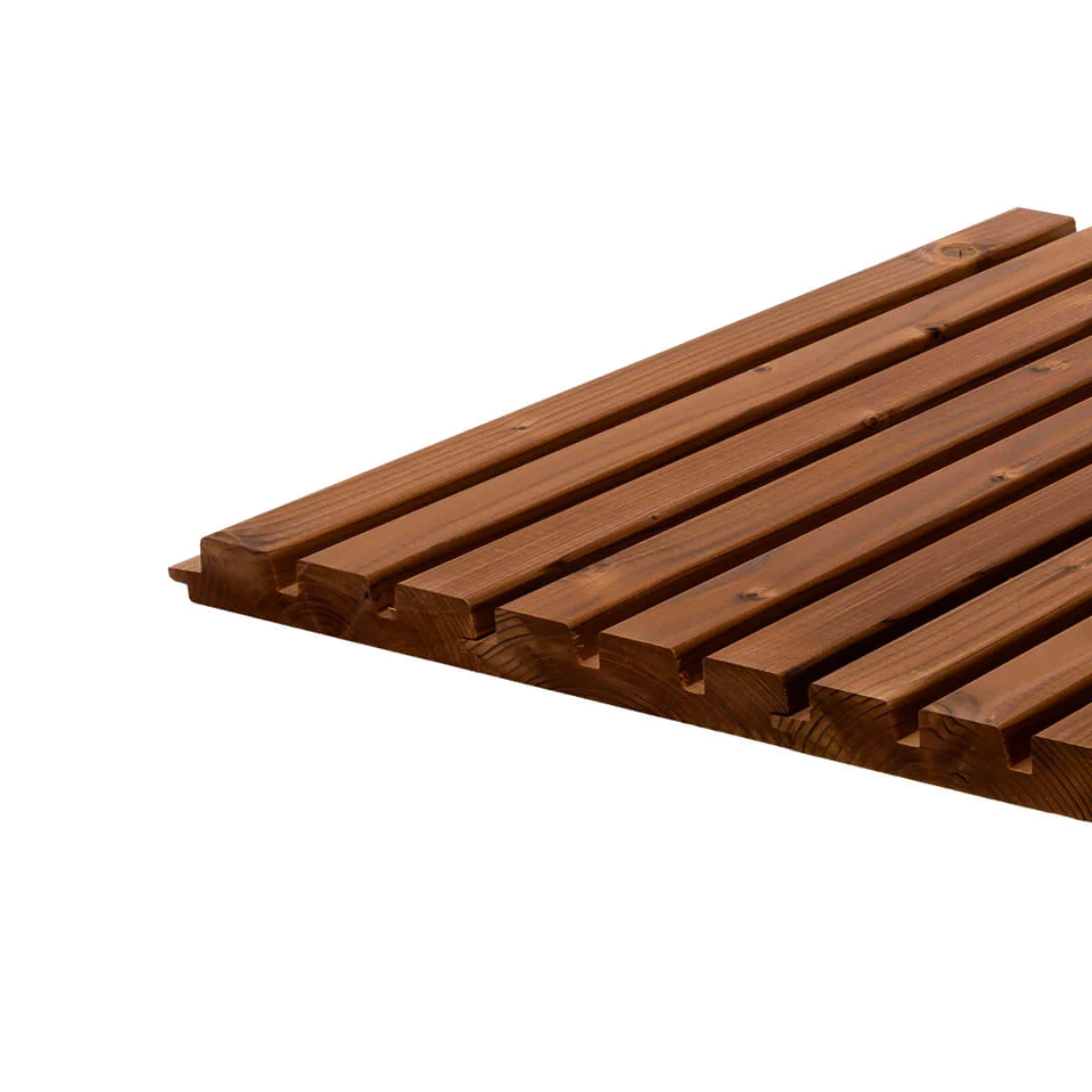 Gemaakt van hoogwaardig thermisch gemodificeerd Scandinavisch grenen, zonder chemische toevoegingen. Hierdoor is het hout extreem duurzaam (duurzaamheidsklasse I/II), vormstabiel, harsvrij en bestand tegen vocht en schimmels. Dankzij deze eigenschappen is het geschikt voor uiteenlopende toepassingen zoals gevels, wanden, plafonds en zelfs vochtige binnenruimtes zoals sauna’s.