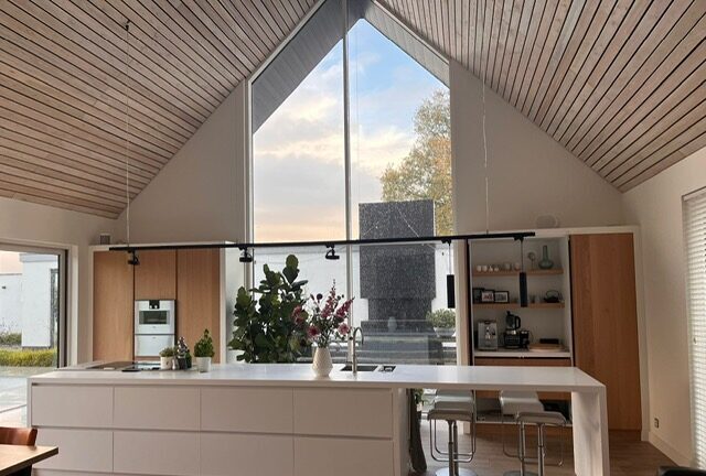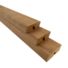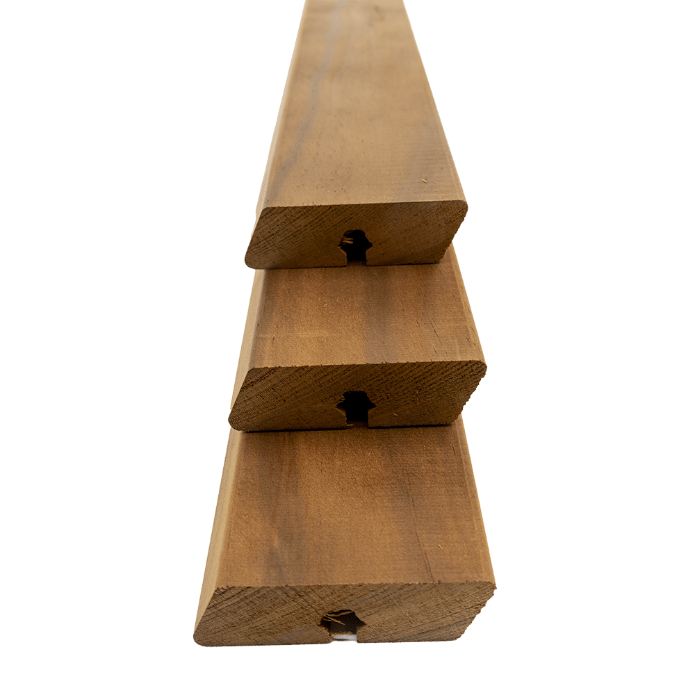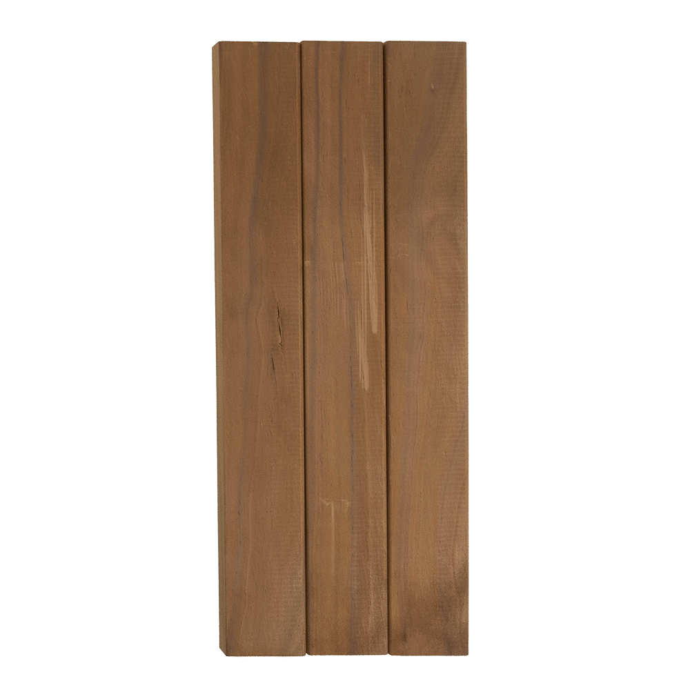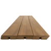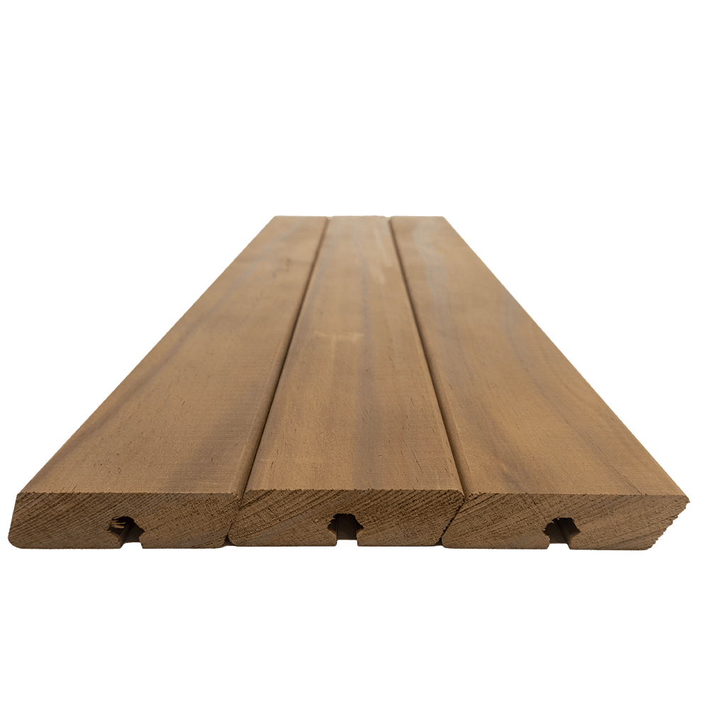 Dankzij de thermische modificatie blinkt het hout uit in stabiliteit, duurzaamheid en een elegante, noestvrije afwerking en heeft een karamelkleurige tint.
