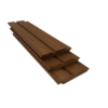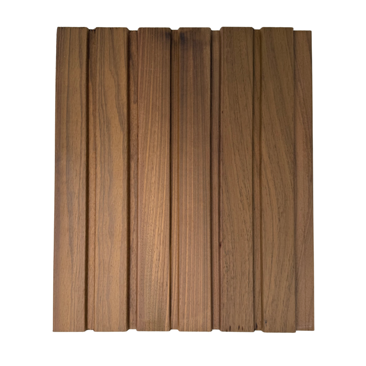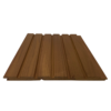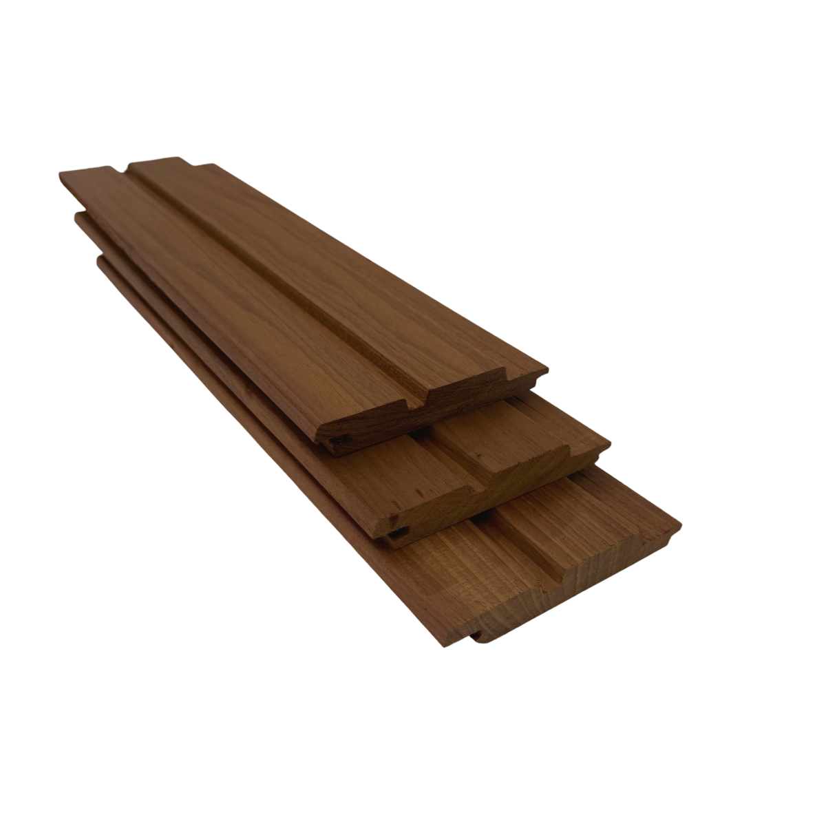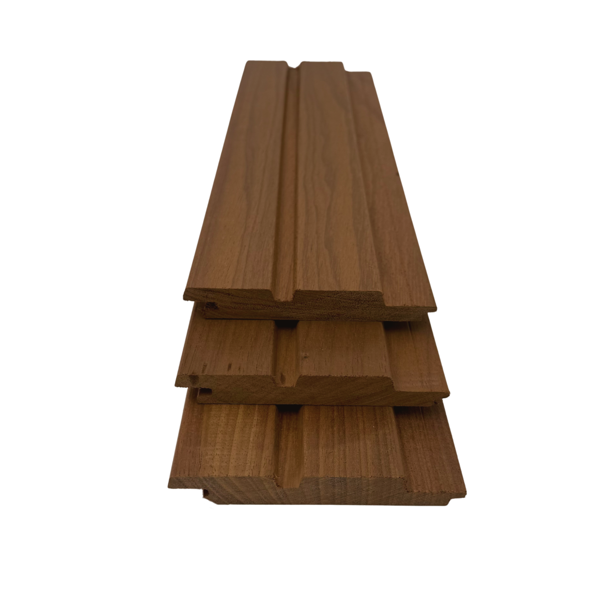 Dit warme (licht)bruine Tauari hout is uitgevoerd met een Dubbele Rhombus Secret Nailing profiel, wat zorgt voor een naadloze afwerking zonder zichtbare bevestigingen (blinde bevestiging). In tegenstelling tot traditionele montage, waarbij schroeven of nagels zichtbaar blijven, worden de planken bij dit profiel onzichtbaar bevestigd aan de achterliggende onderconstructie. Het Secret Nailing profiel van Thermo Tauari heeft een kopmaat van 21x120mm, wat net iets smaller en dunner is dan een standaard Dubbele Rhombus profiel.