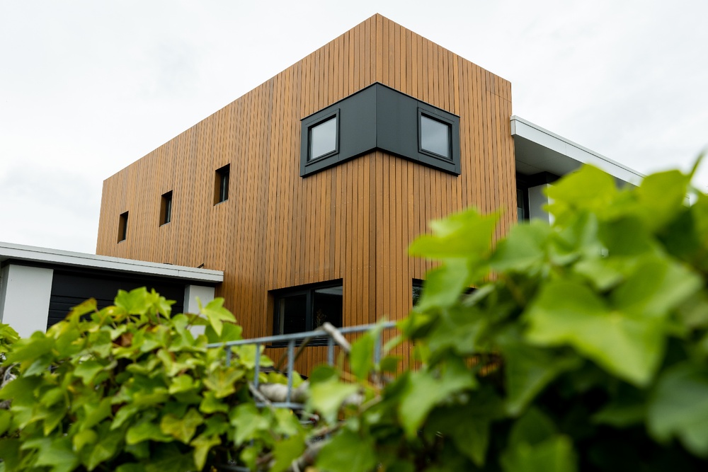 Aan de Rietgans in Groningen is deze moderne woning voorzien van een gevelbekleding van thermisch gemodificeerd ayous. De warme kleurafwerking en strakke belijning zorgen voor een tijdloze, luxe uitstraling.