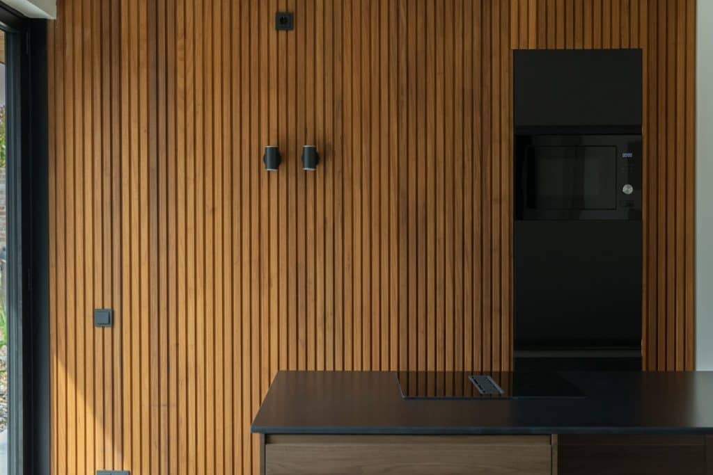 - Dankzij thermische modificatie, acetylering, of natuurlijke duurzaamheid zijn de houtsoorten bestand tegen vocht, schimmels en weersomstandigheden.